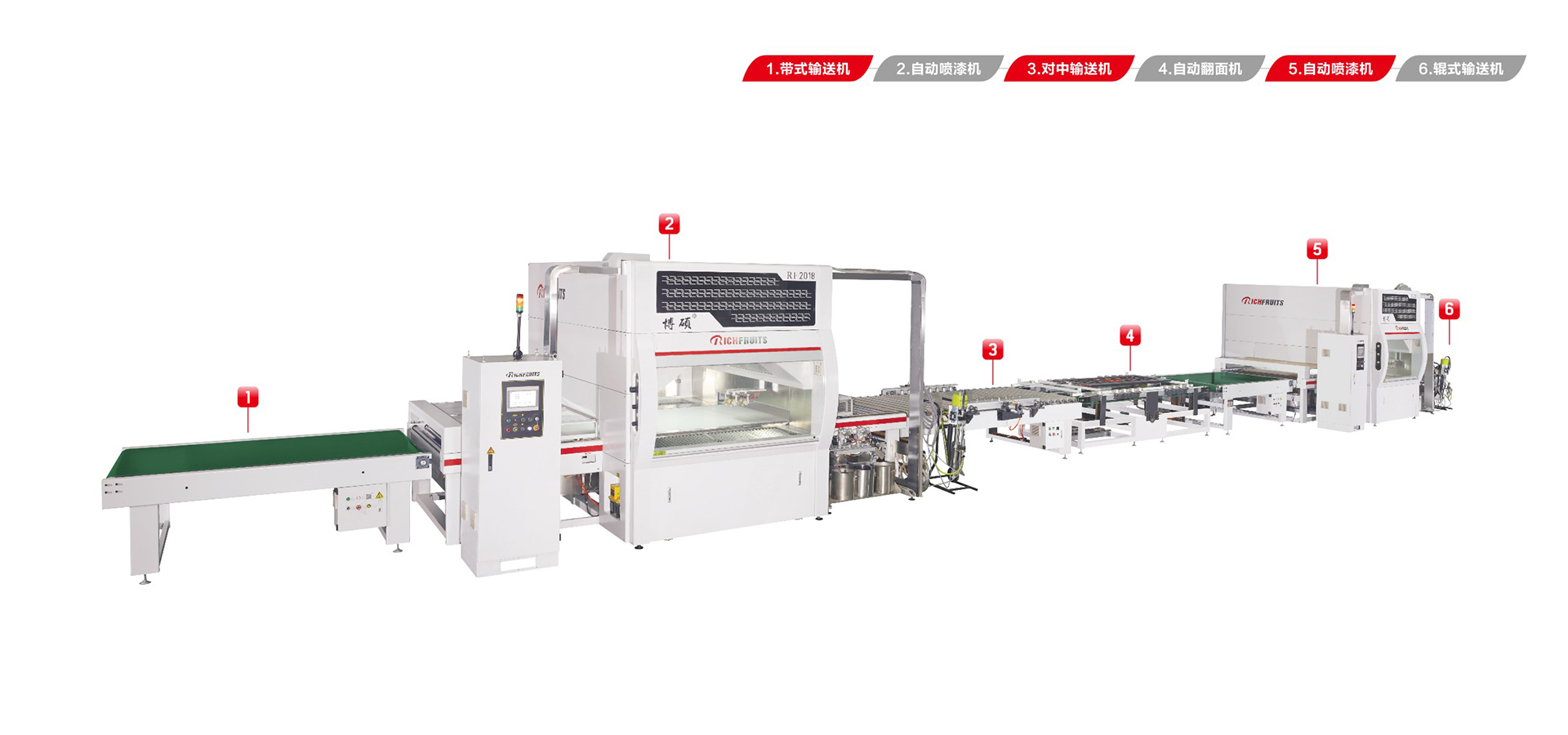 適用于板式家具、實(shí)木門(mén)、櫥柜門(mén)、工藝品、裝飾板、硅酸鈣板、玻鎂板、水泥纖維板的板式加工件的平面和四個(gè)側(cè)邊進(jìn)行高質(zhì)量、大批量連續(xù)噴漆。