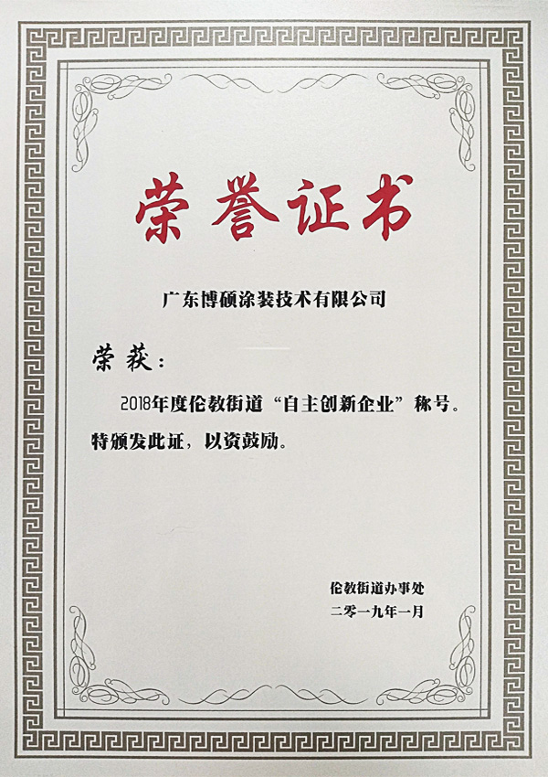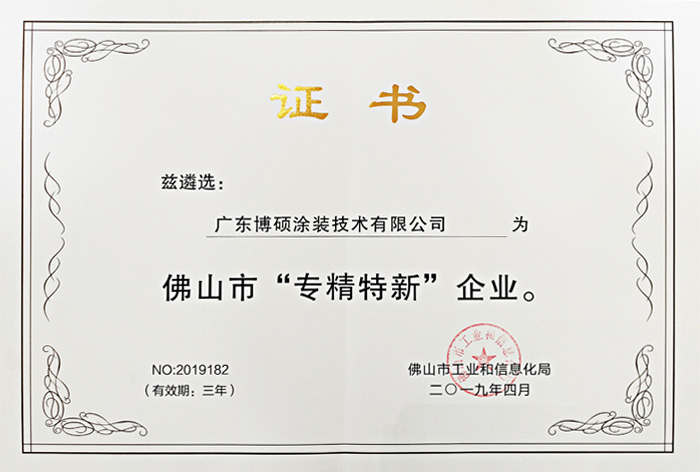 榮獲“佛山市涂裝一體化演講開發(fā)中心” “廣東省博碩涂裝一體化工程技術(shù)研究中心”