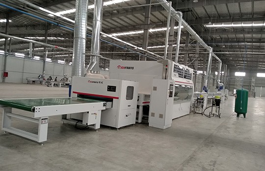 工藝要求 UV底漆、水性面漆 產(chǎn)品種類 實(shí)木復(fù)合門、門套、門板 產(chǎn)線數(shù)量 6條 設(shè)備特色 自動噴漆、砂光、噴色、修色和面漆,不下線連續(xù)生產(chǎn)。 生產(chǎn)產(chǎn)能 800套門板/天 廢氣處理 干式過漉+催化燃燒處理系統(tǒng) -