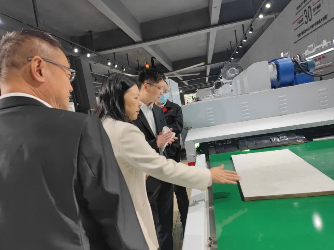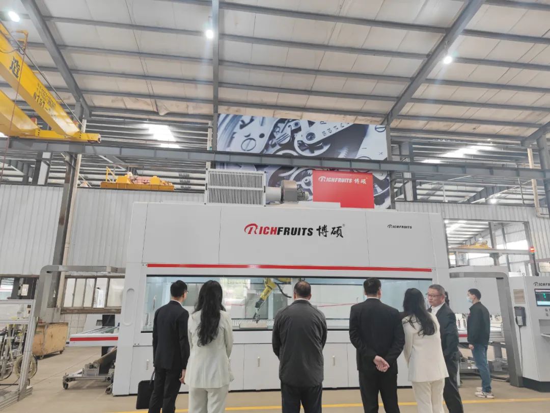 再一同體驗了“涂裝智能生產(chǎn)線”準分子膚感板的生產(chǎn)過程,從進料到出成品,感受到準分子膚感板如嬰兒般皮膚細膩的觸感。通過現(xiàn)場感受涂裝設備在效率、智能、環(huán)保、節(jié)能方面的先進性,劉書記對博碩在技術研發(fā)的投入及設備的智能、環(huán)保、節(jié)能方面的顯著成效給予了充分的肯定和高度的贊揚,對博碩未來及長遠發(fā)展非??春茫瑫r也做出了相關的工作指示。