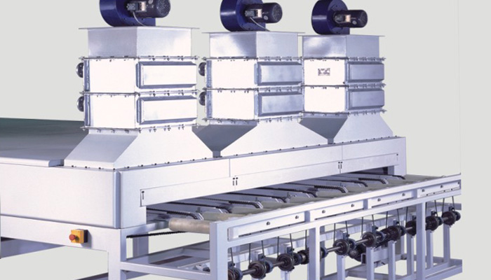 適用于門框線、畫框。舌槽企口板門窗配件、家具配件、踢腳線、地板、塑鋼型材和木塑線條等長條型且規(guī)格統(tǒng)一的工件的三個表面,針對PU、NC、UV和水性漆自動噴漆后的油漆流平和干燥。